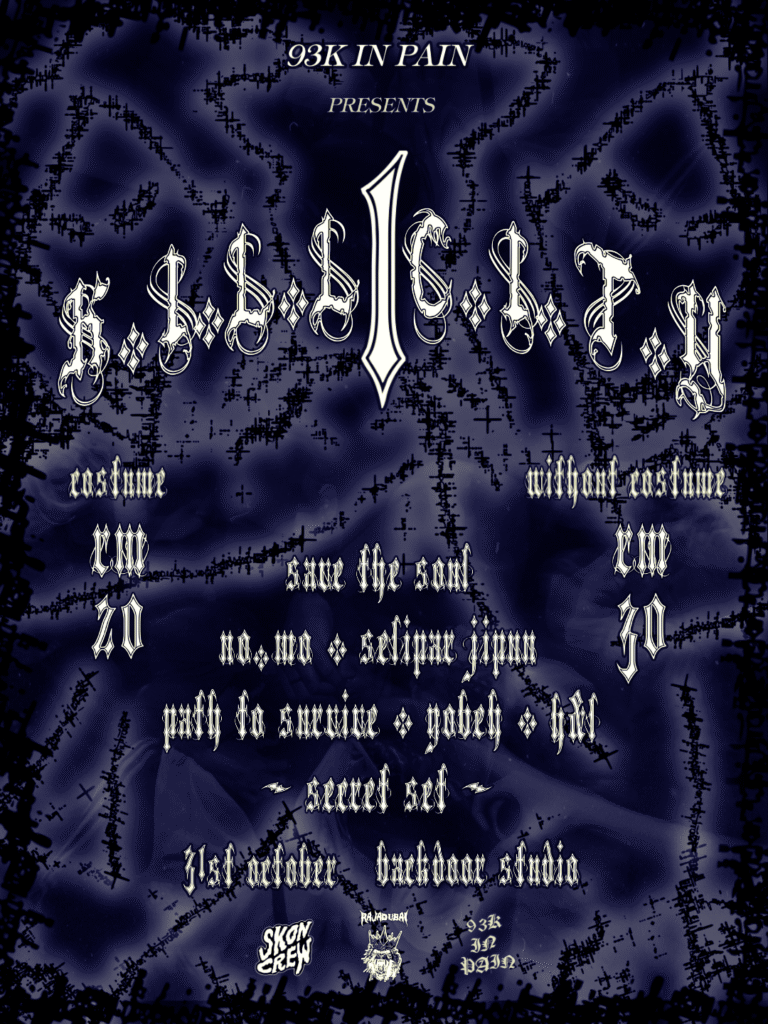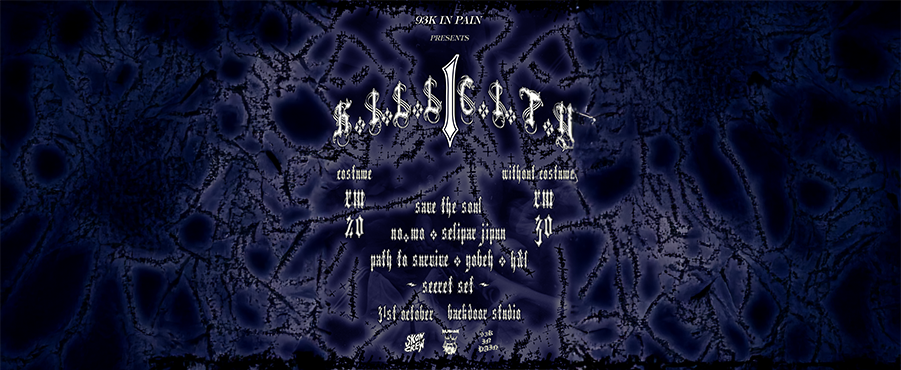Sebuah gig bersempena dengan tarikh Halloween iaitu Kill City 1, anjuran 93K IN PAIN bakal berlangsung di Backdoor Studio pada 31 Oktober 2025 (Jumaat) bermula dari jam 7.00pm sampai habis! Di sebabkan gig ini di anjurkan pada hari Halloween iaitu pada 31 Oktober, tiket dijual dengan harga RM30 untuk mereka yang berpakaian biasa dan di jual dengan harga RM20 sekiranya anda datang dengan kostum Halloween.
