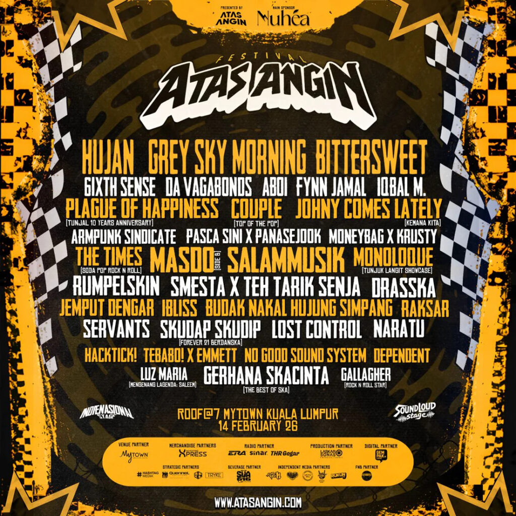 Atas Angin Festival 2026 kembali menggegarkan Rooftop @7, MyTOWN KL pada 14 February 2026(Sabtu). Kali ini mereka kembali dengan pengalaman yang lebih besar, lebih berbeza dan lebih luar biasa berbanding dengan tahun-tahun sebelumnya.
