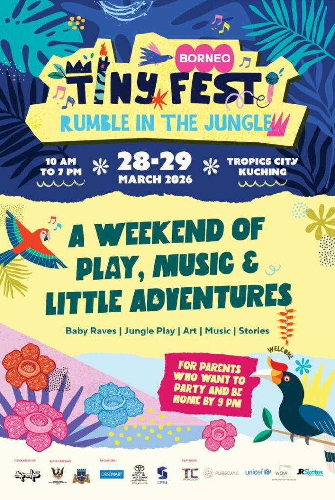 Sebuah acara kekeluargaan iaitu ‘Tiny Fest‘ yang berkonsep dan bertemakan mini-rave untuk kanak-kanak akan berlangsung di Tropics City pada 28-29 March 2026 (Sabtu & Ahad). Bertemakan ‘Rumble In The Jungle‘, untuk edisi pertama ini, acara ini direka sebagai sebuah festival bersama keluarga dan kanak-kanak adalah menjadi fokus utama. Terdapat pelbagai aktiviti-aktiviti menarik yang akan terdapat di acara ini seperti permainan kreatif, bengkel interektif, dan sudah semestinya muzik.