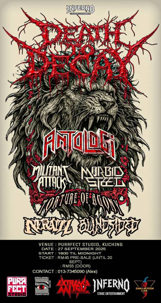 Kepada peminat-peminat muzik Metal aliran trve, pada 27 September 2025 nanti, jangan tunggu lama-lama. Ayuh bersama menjadi sebahagian daripada sejarah Metal di Kuching di gig.